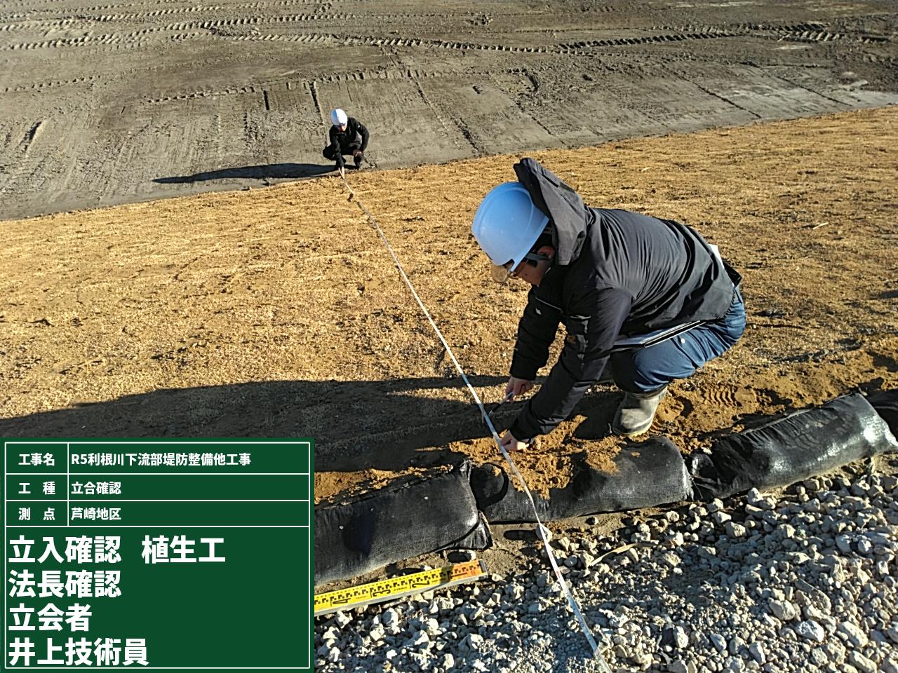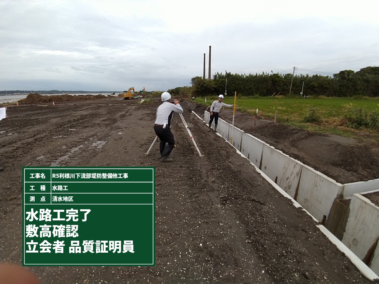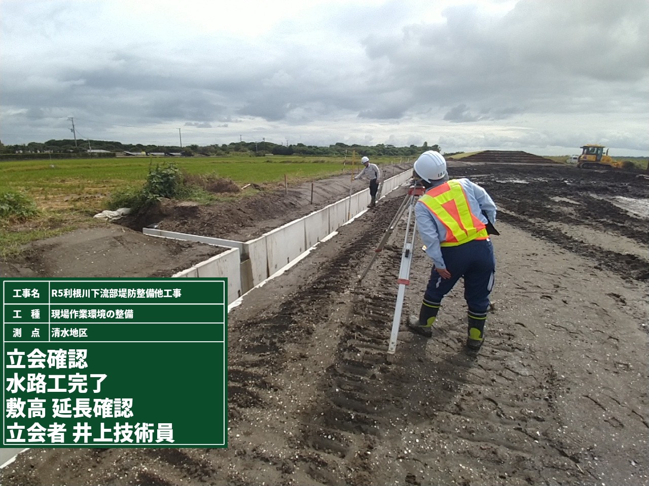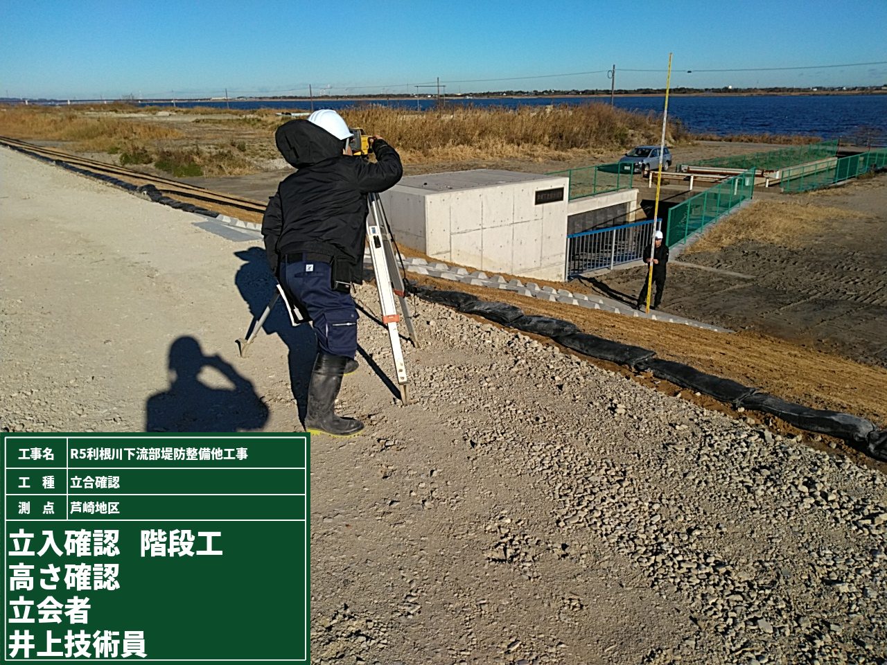 計画通りの高さ・位置に施工しているか発注者に確認して頂き、無事に合格を頂きました。