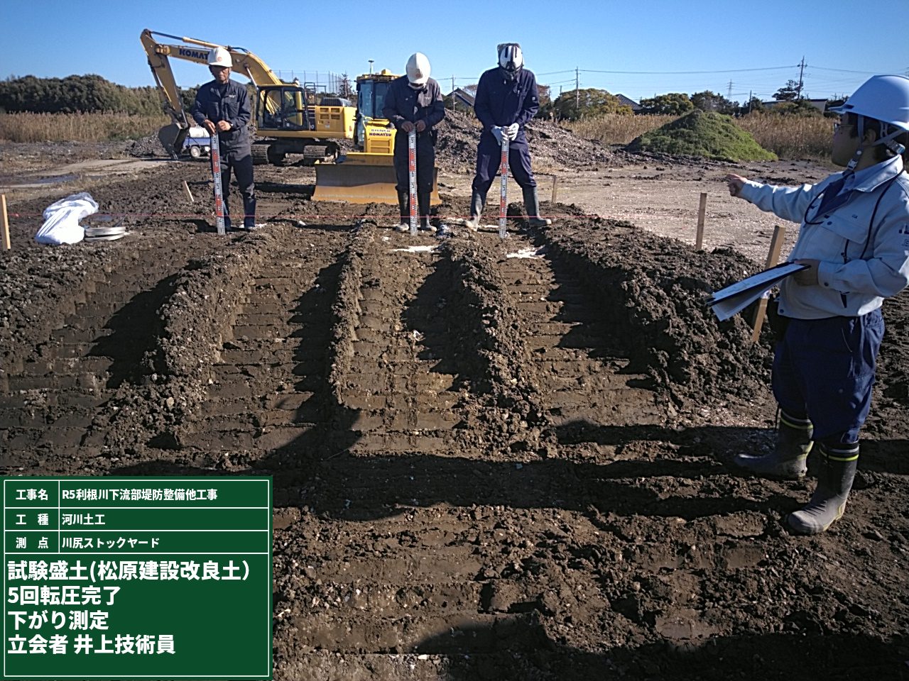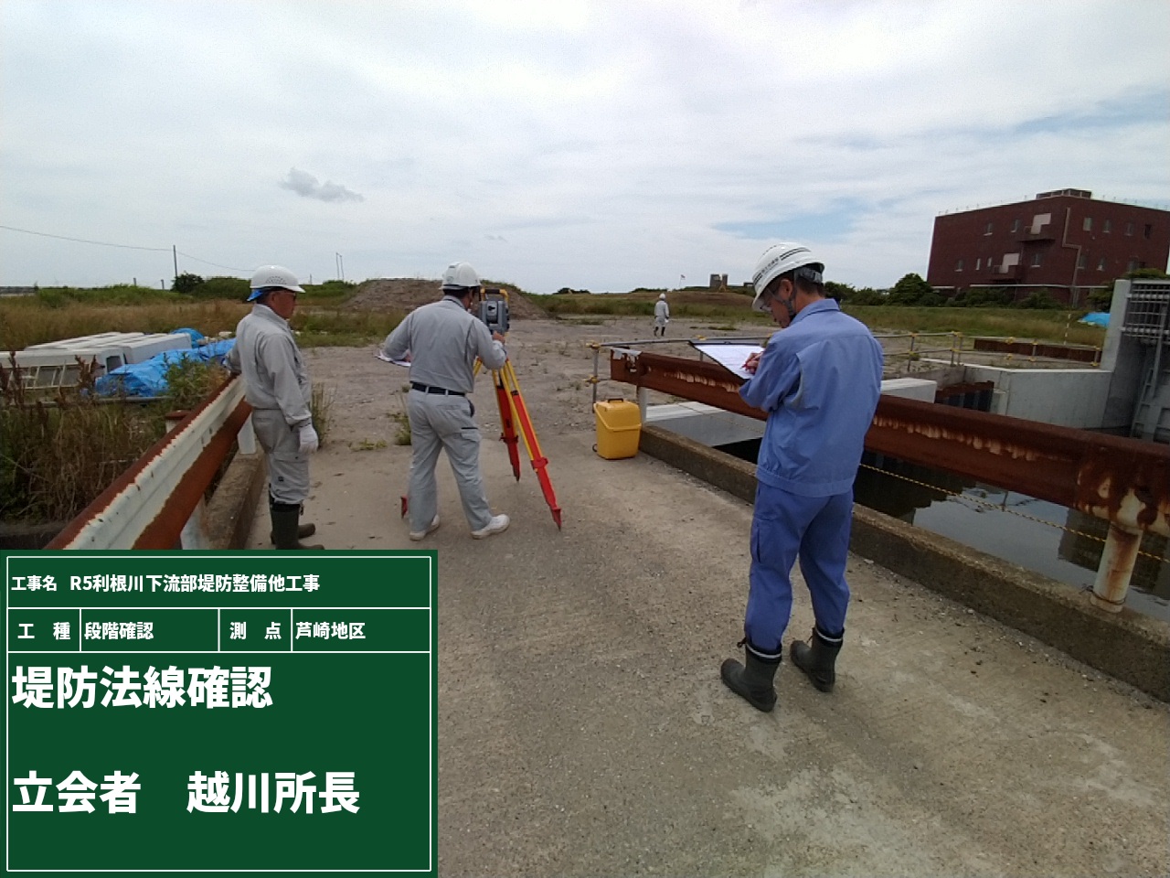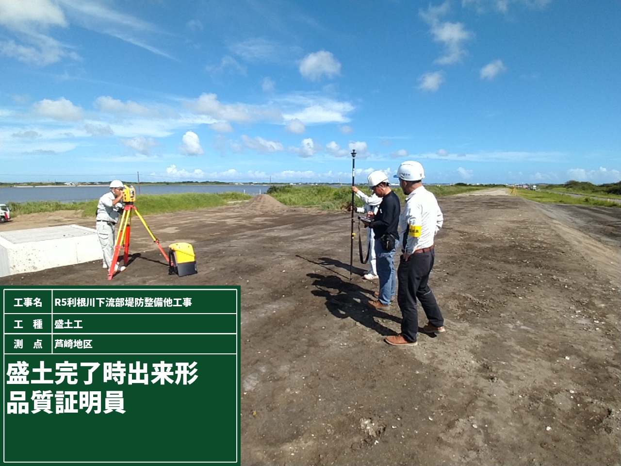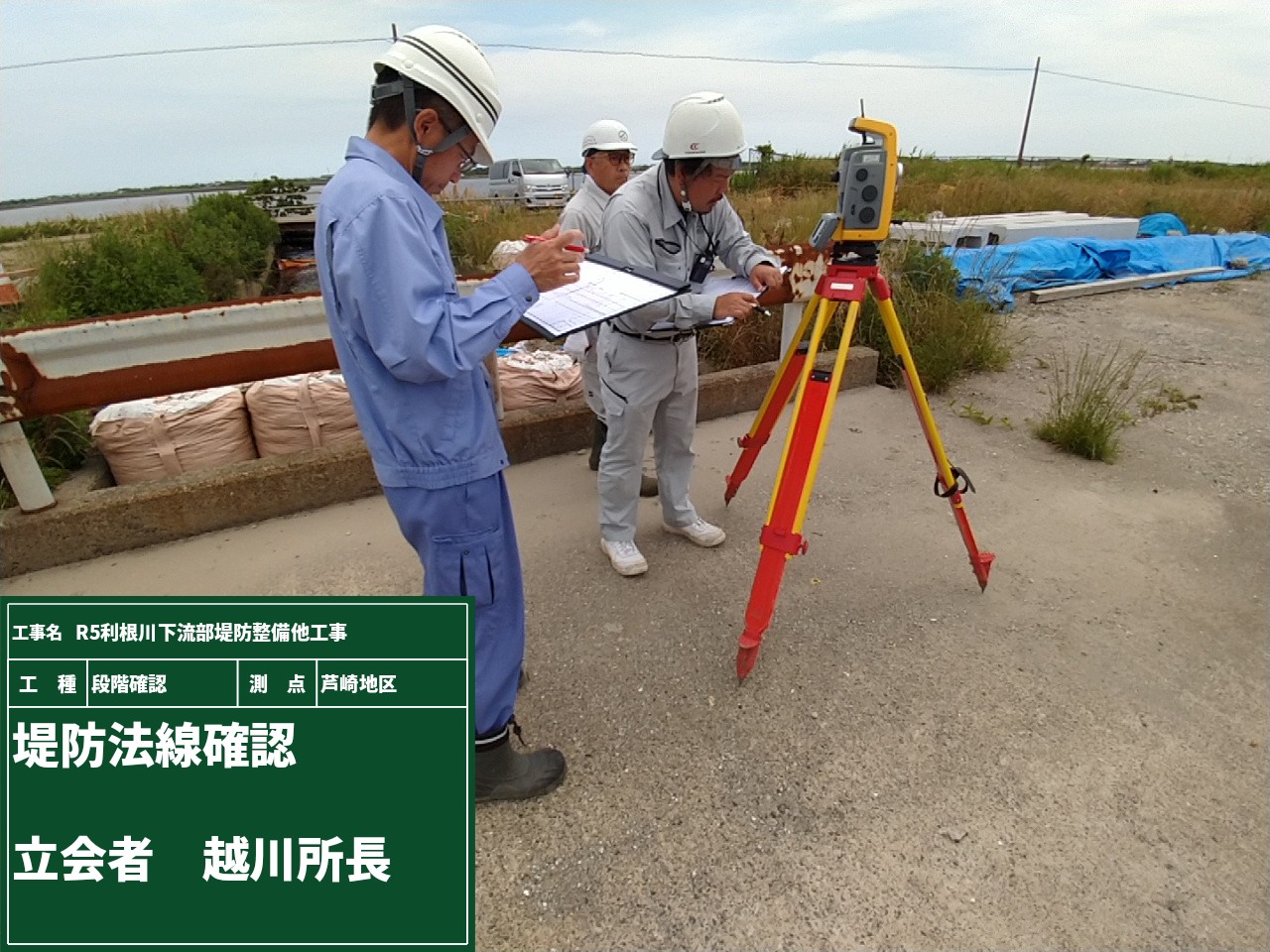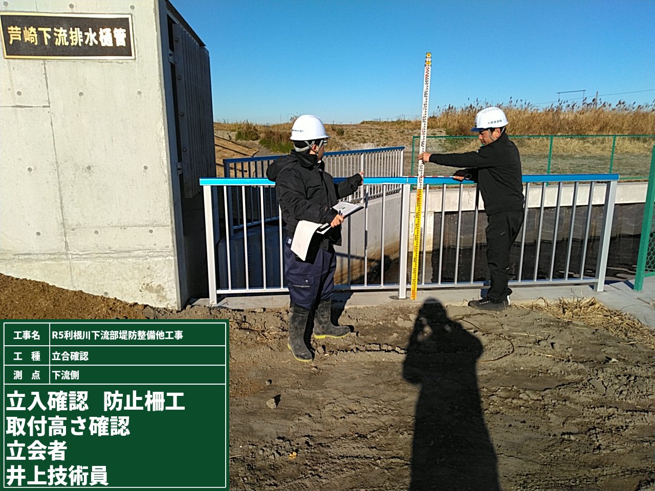 計画通りの高さ・位置に施工しているか発注者に確認して頂き、無事に合格を頂きました。