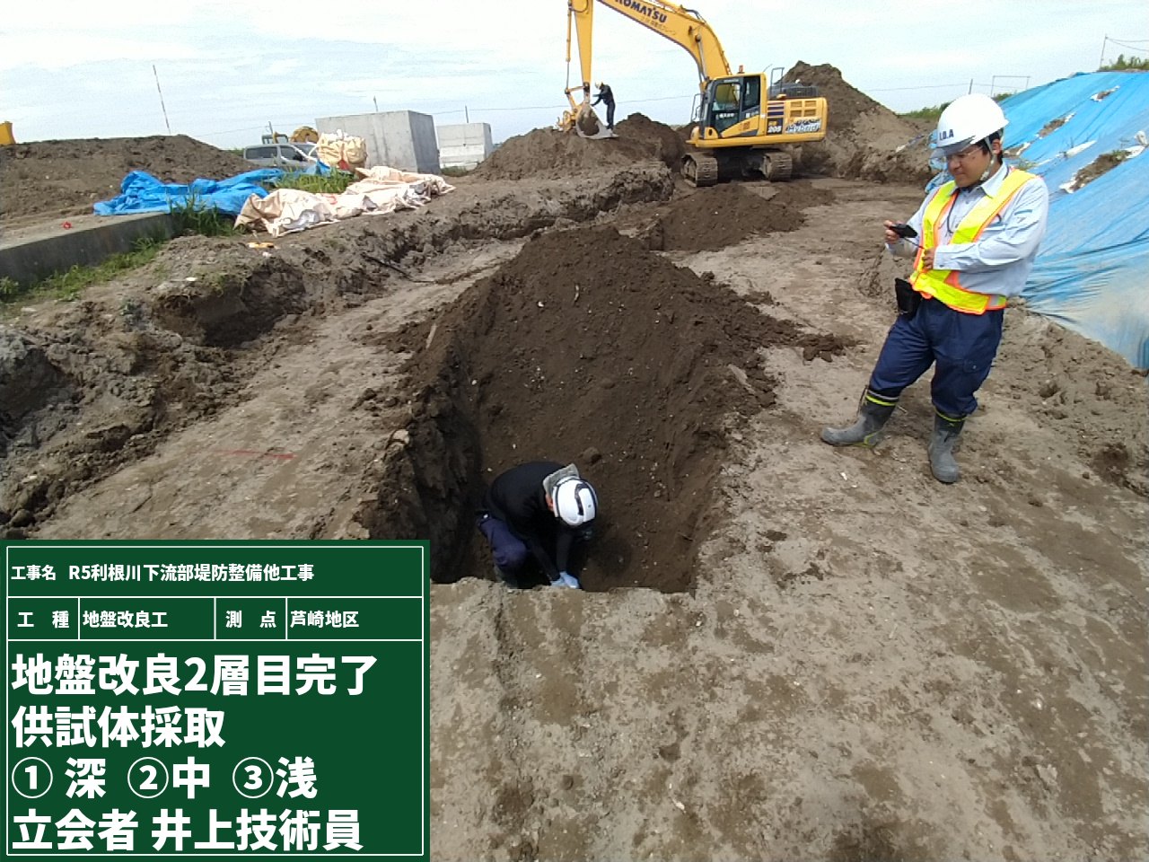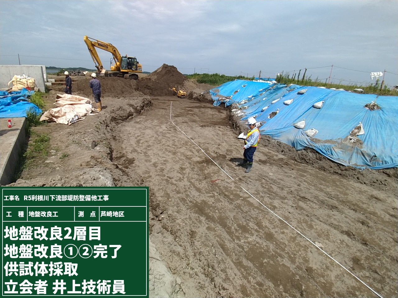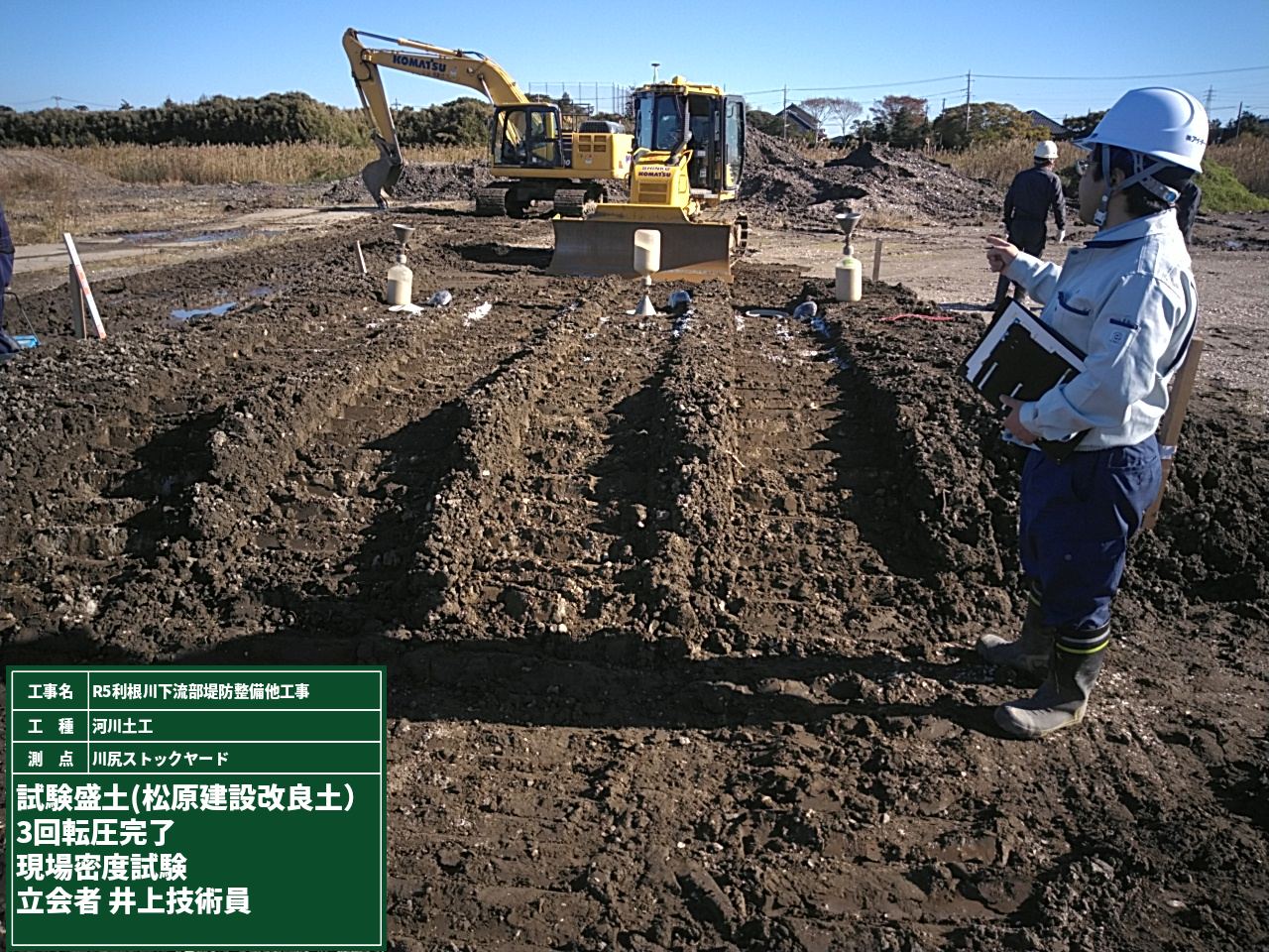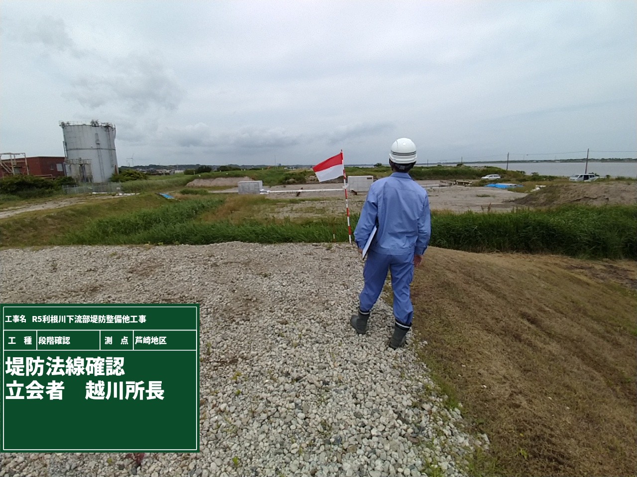 計画通りの高さ・位置に施工しているか発注者に確認して頂き、無事に合格を頂きました。