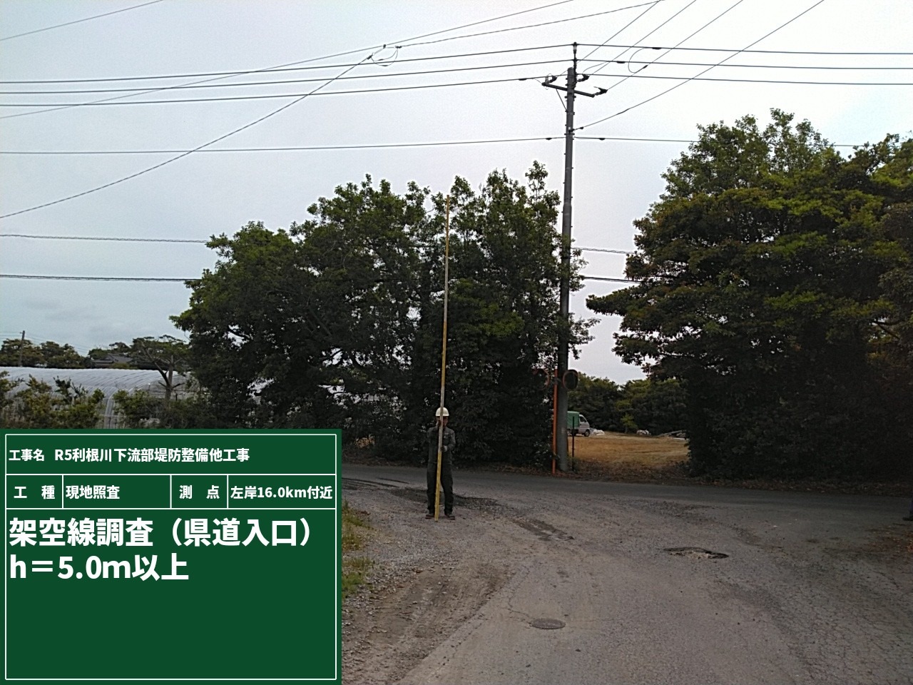 現況の確認、除草作業、大きな車両や重機が通るので電線に引っかからない様にするための架空調査などなど、やることは沢山あります。