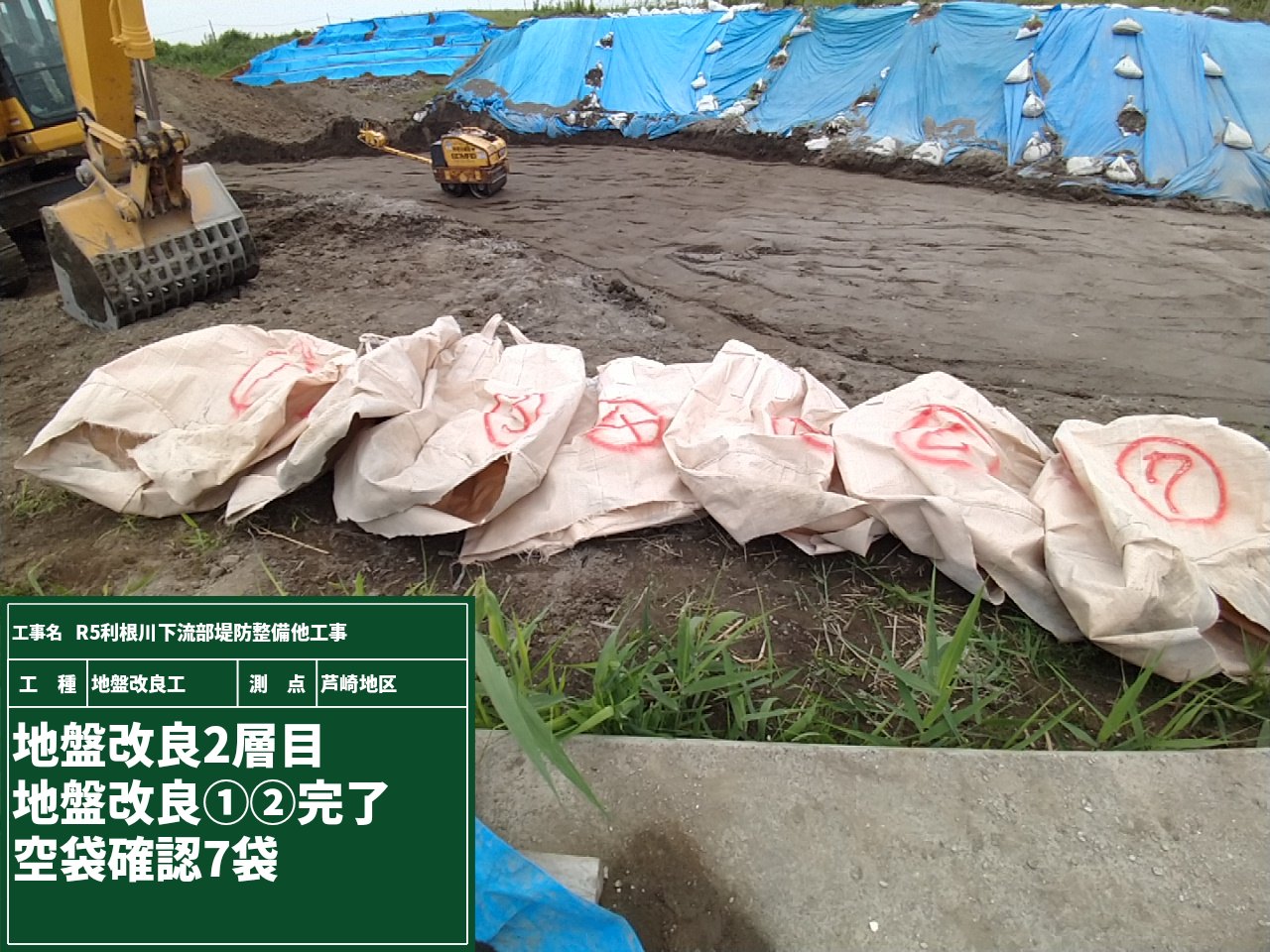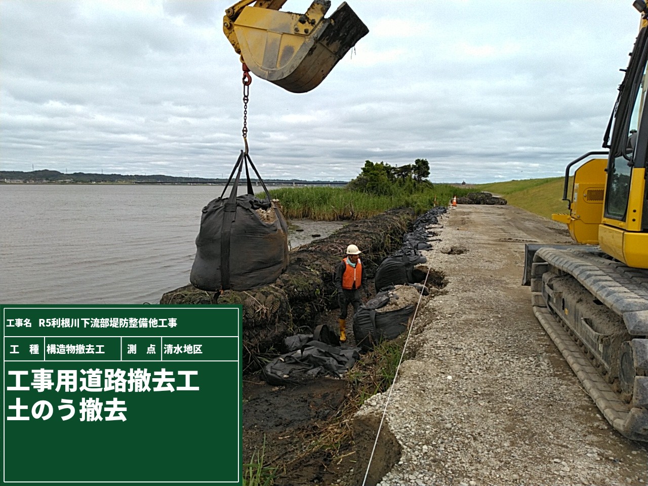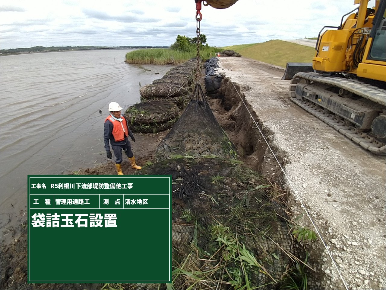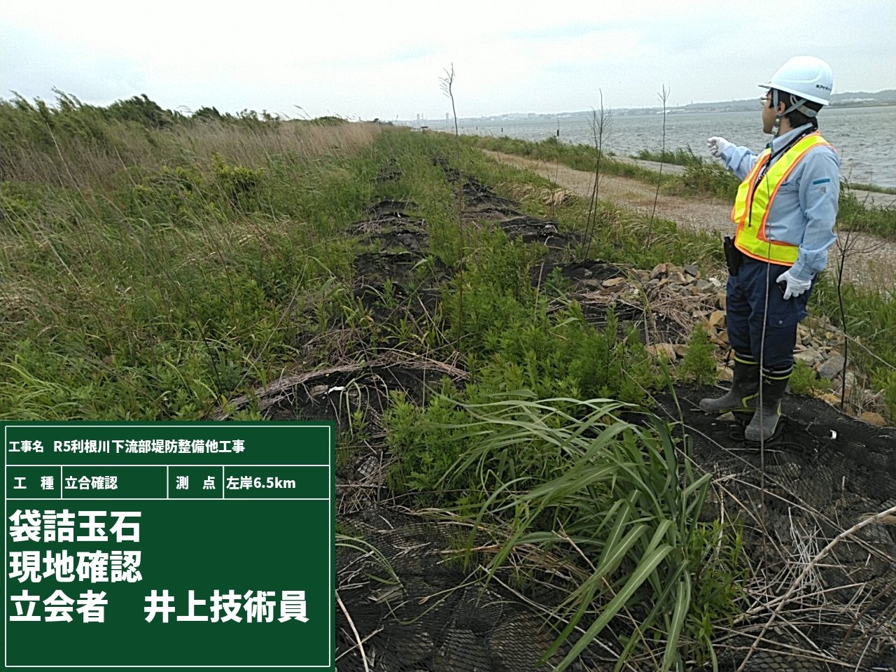 袋詰玉石の立合確認もありました。袋詰玉石は河川工事に欠かせない材料です。