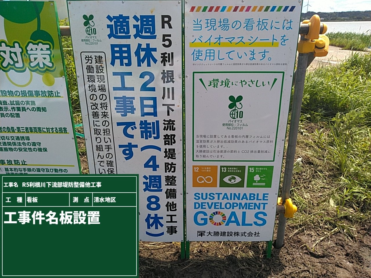 そして工事看板も設置しました。工事の概要や期間などを通行人や近隣住民の方にお知らせしています。