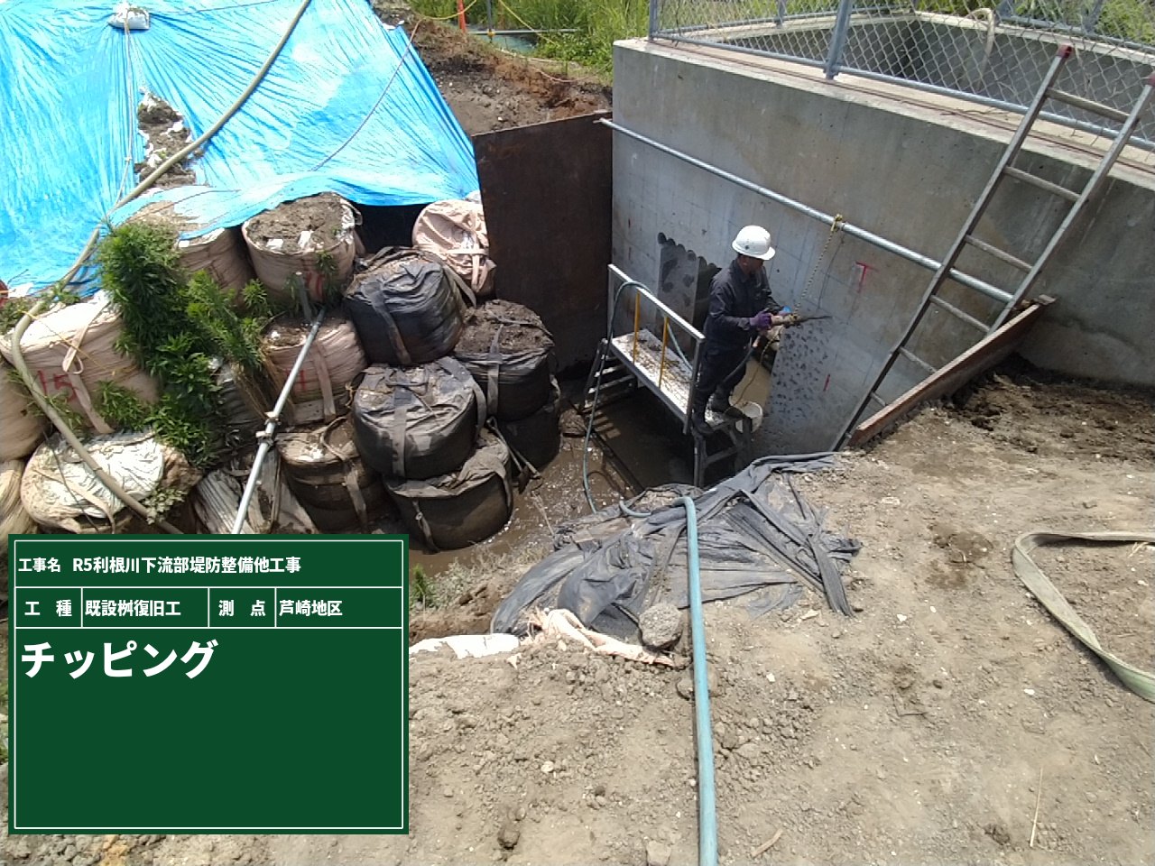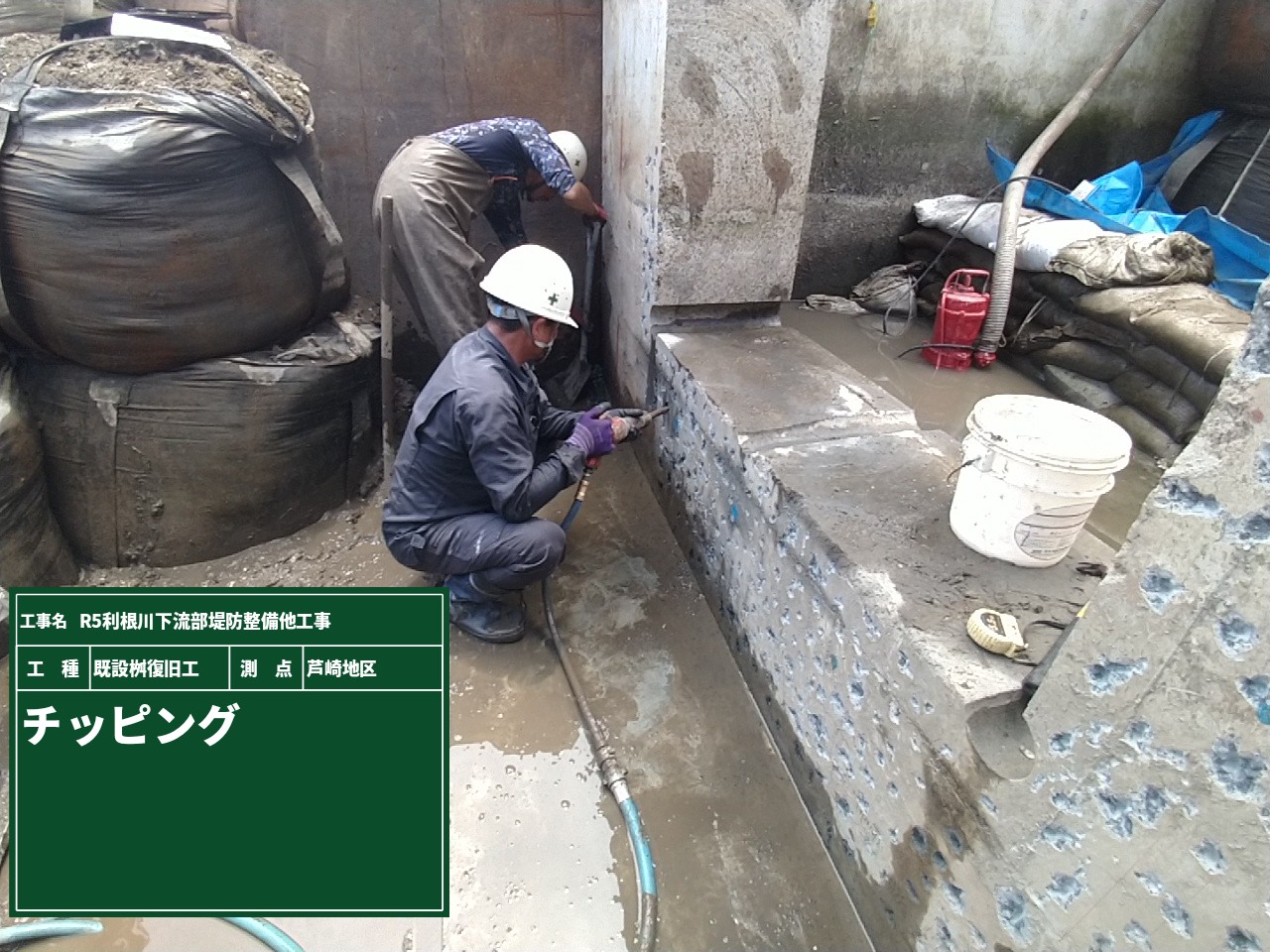 チッピングは既に施工された硬いコンクリートの打継面に対して、チッピングハンマーなどで削ったり、剥がしたりする作業のことです。