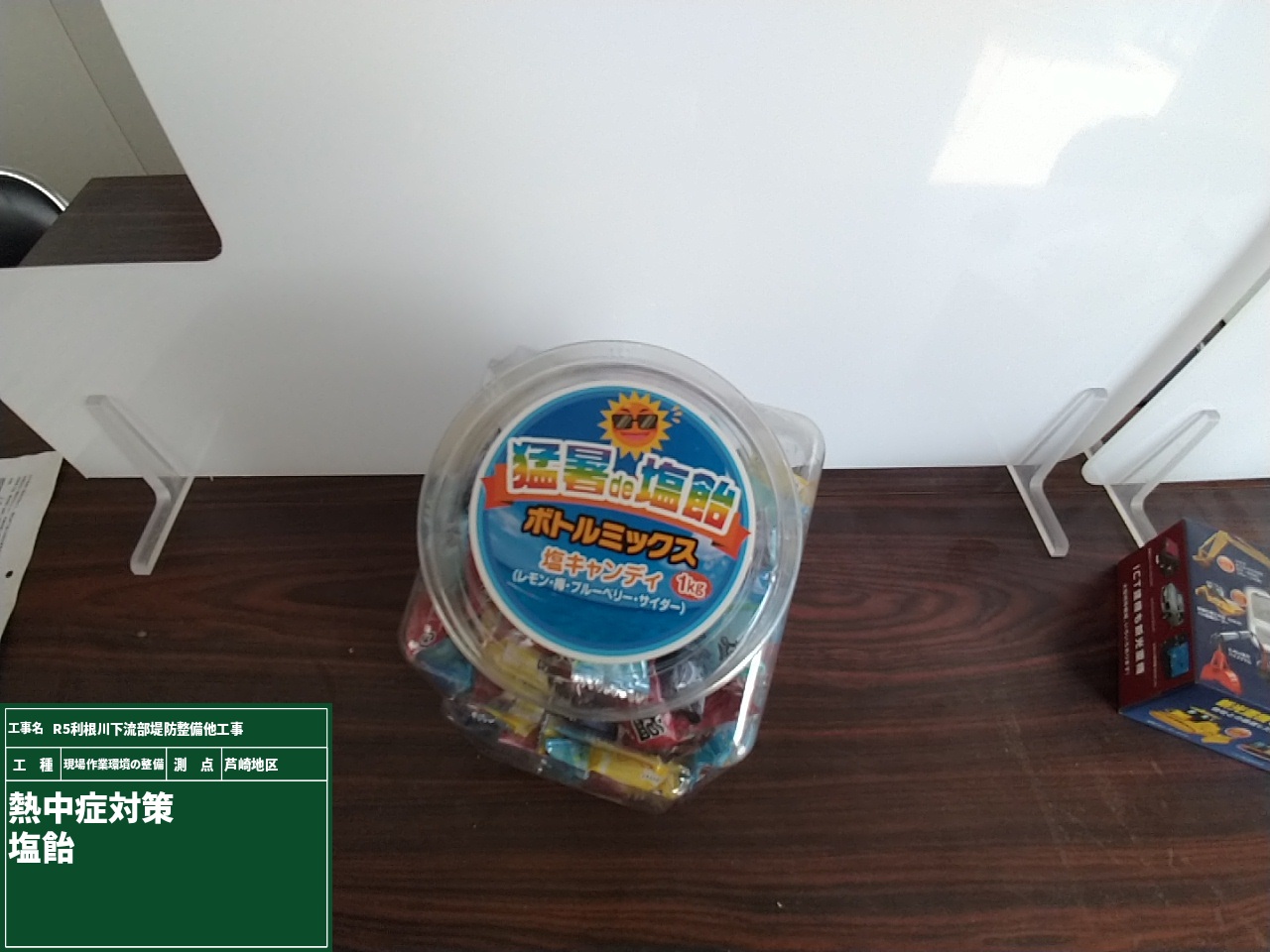 そして熱中症対策としてはお馴染みの顔ぶれ、塩飴と熱中症対策キットです。