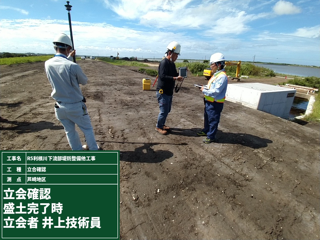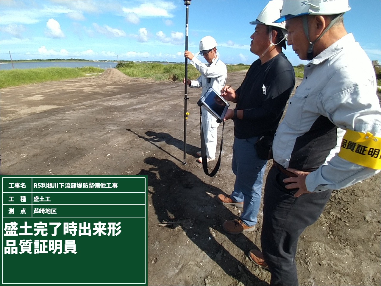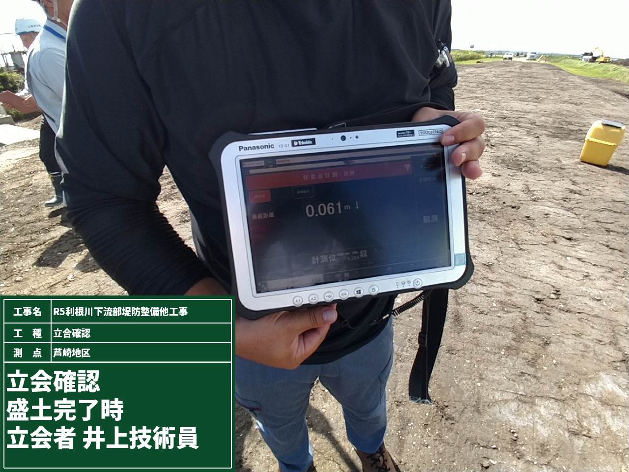 立会確認も芦崎地区同様、ICTを活用した出来形検査なので短時間・少人数で効率よく検査を進めていきます。