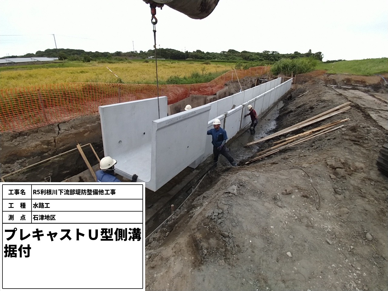 以前の日記で、石津地区施工の際にU型側溝のことを書きましたが、清水地区でもU型側溝の据付が始まりました。