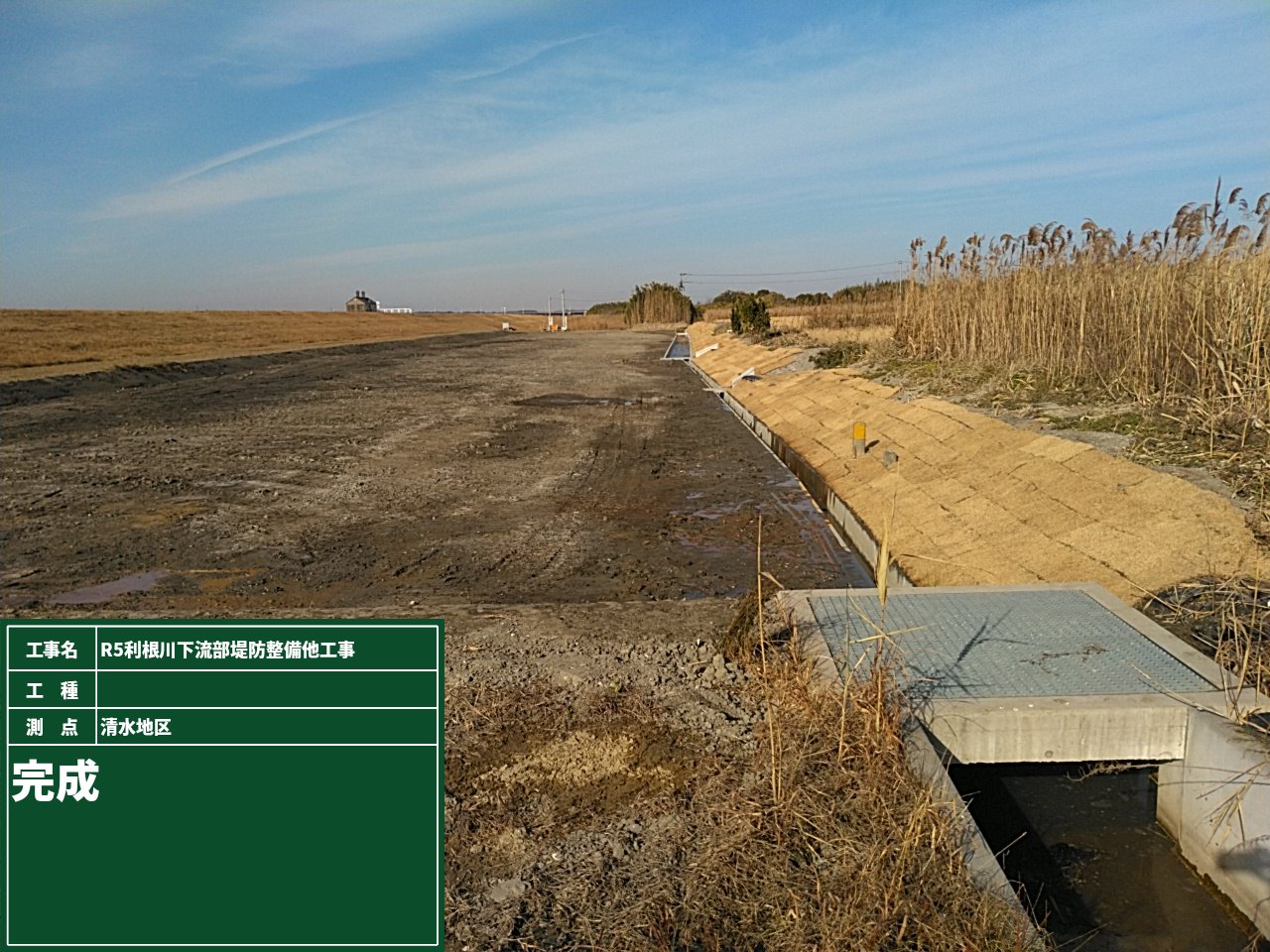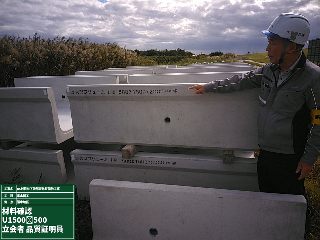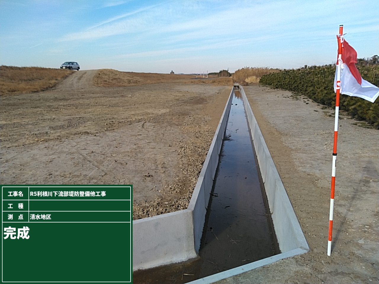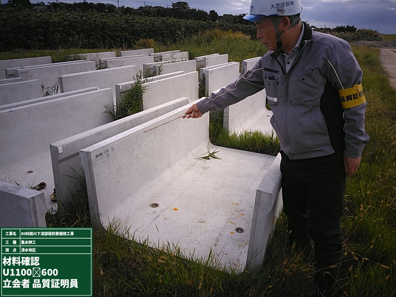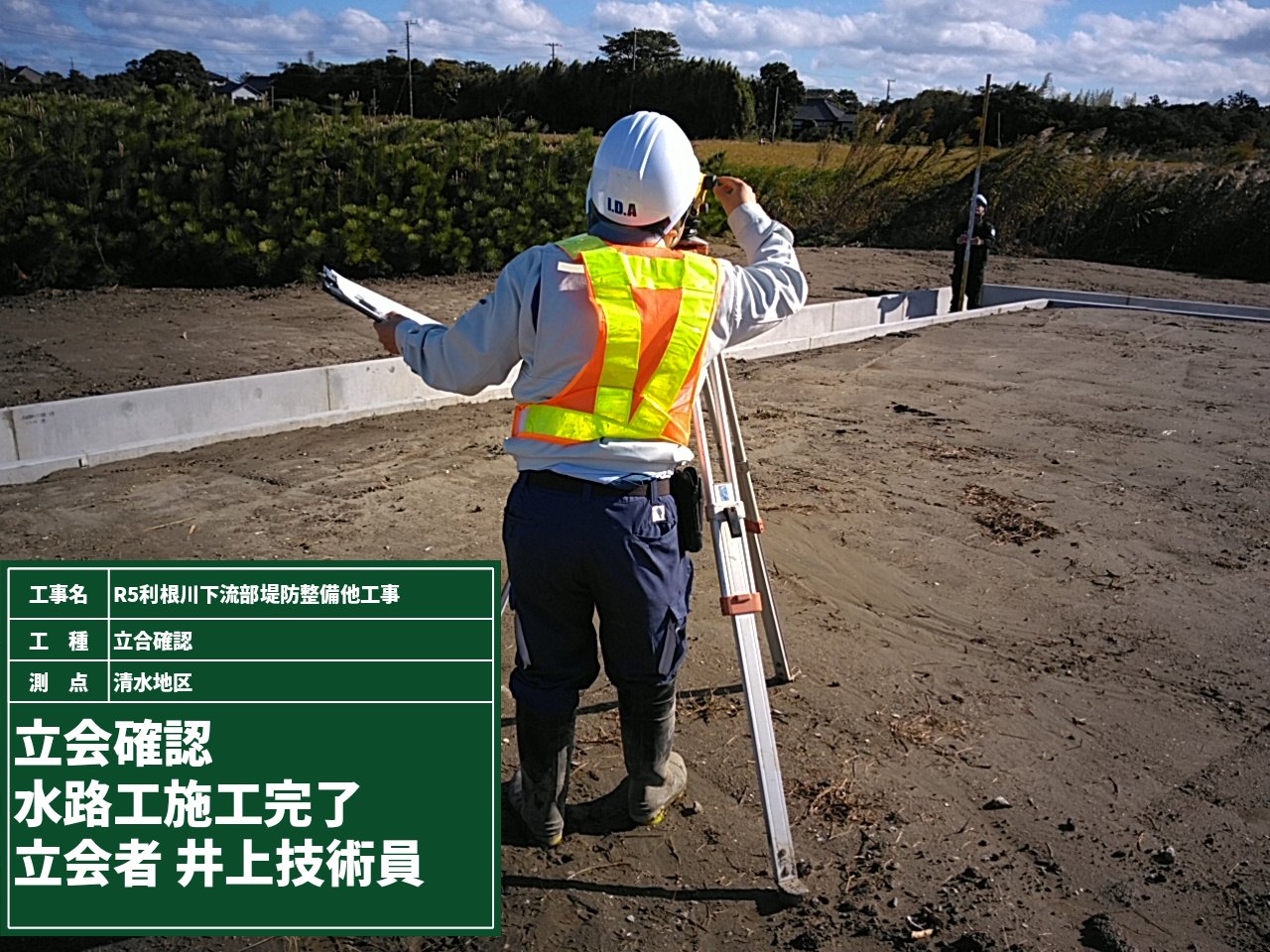 清水地区でのU字溝の据付が完了したので、立会いでの確認がありました。