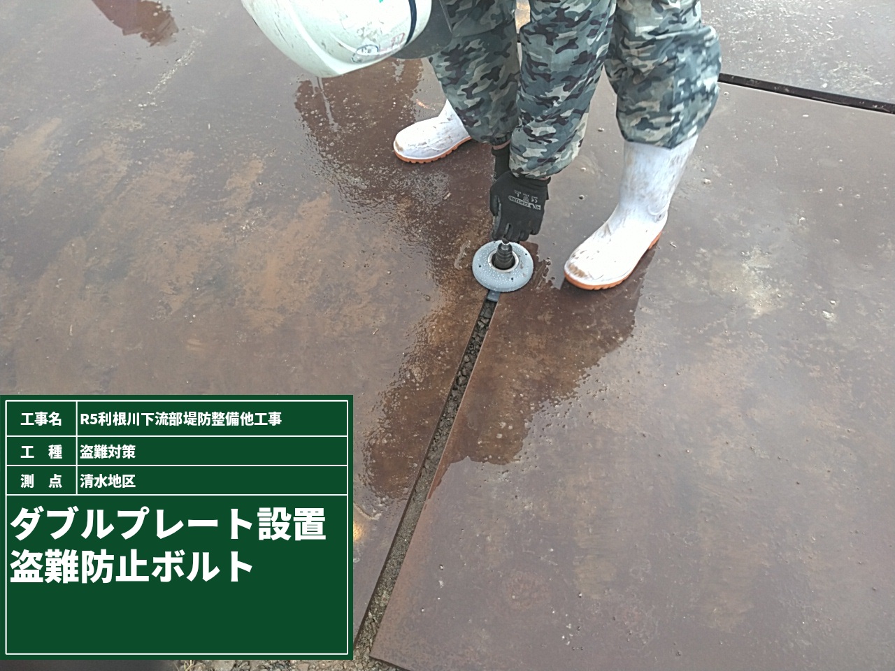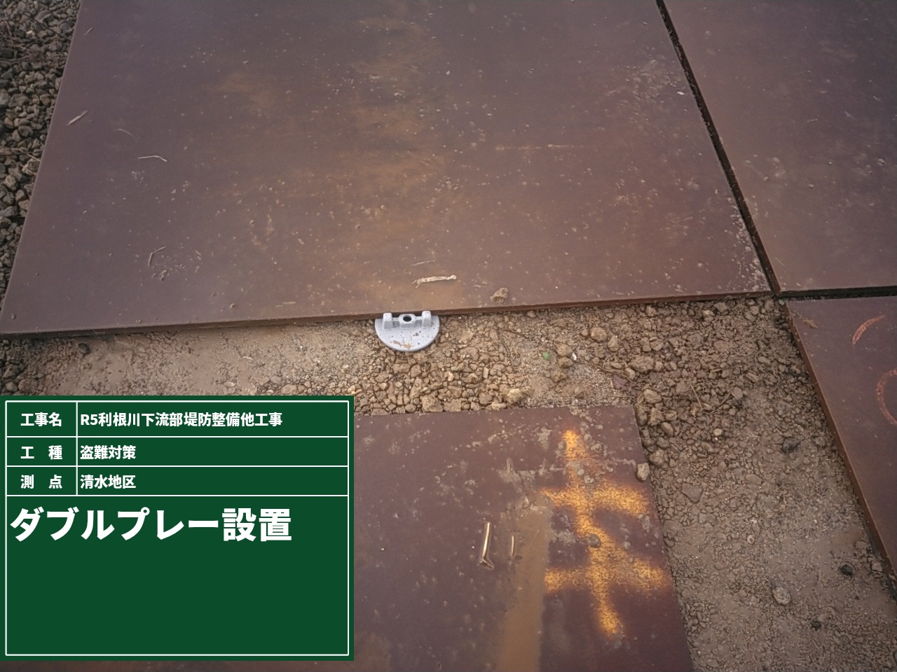 2枚目と3枚目の写真は、現場での盗難対策用に敷鉄板を金具で固定しています。